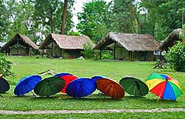 Around 50 km from the center of the Tezpur city of Assam, off the road to Arunachal Pradesh, is the unique Eco Camp, which can be reached by a short drive over creaky bridges and a dirt tract. This is one of the most favorite excursions and outdoor recreational sites around the city of Tezpur and is the outcome of the united efforts of the Assam Anglers’ Association and the Forest Department of the state. Situated on the banks of the river Jiya Bhoroli, the park is also located close by the famous Nameri Tiger Reserve of Assam.