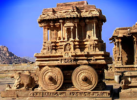 Located on the southern banks of the Tungabhadra River, the Vithala temple is another imposing structure amidst the ruins. The large Ranga Mantapa of the temple has 56 musical pillars that resound with musical notes when struck. In the temple courtyard stands a magnificent stone chariot, so perfectly proportioned that the stone wheels actually rotate.