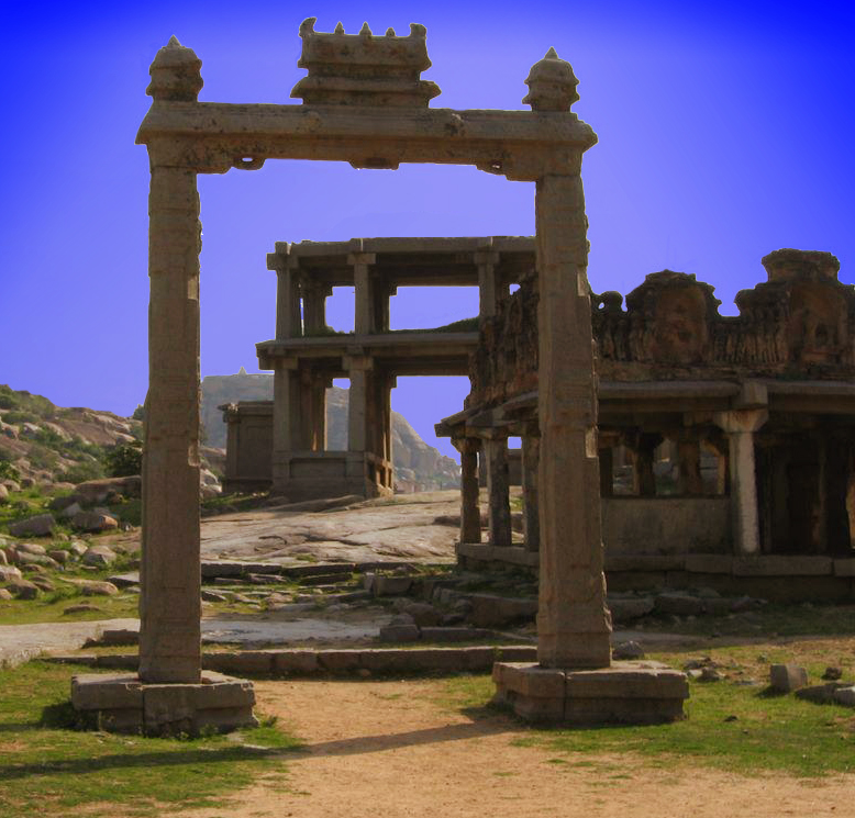 Once the majestic capital of the powerful Vijayanagara Empire, Hampi is now a ruined city of ancient palaces and forts. Founded by Harihara and Bukka in 1336, the landscape of Hampi was dotted with magnificent palaces, sacred temples, massive fortifications, baths, markets, pavilions, and stables for royal elephants. The Vijayanagara kings were great patrons of art and Hampi became the epicenter of a flourishing indigenous culture.